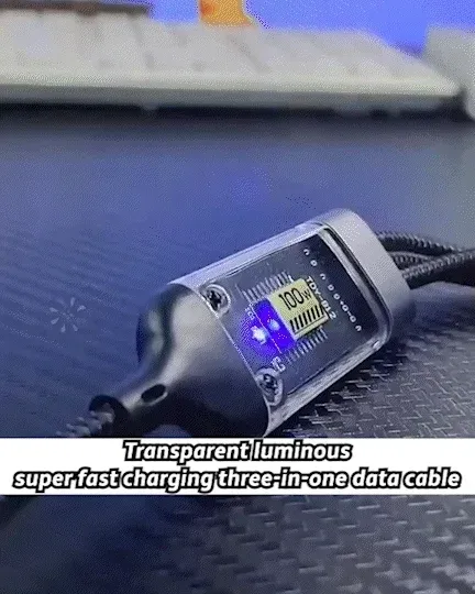 100W Fast Charging 3-in-1 Data Cable with Night Light 1.2m