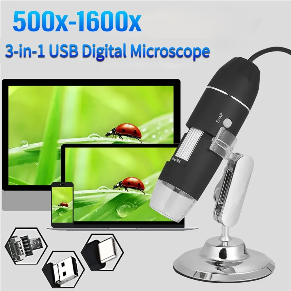 3-in-1 1600x Digital Microscope Camera (Electronic Magnifying Endoscope)