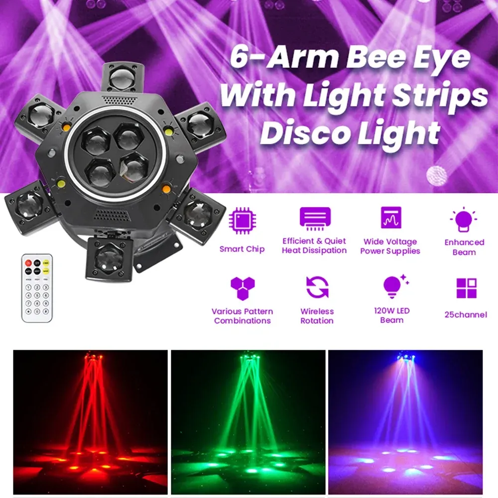 Remote control 6-arm shaking DJ light party LED beam light rotating stage effect light